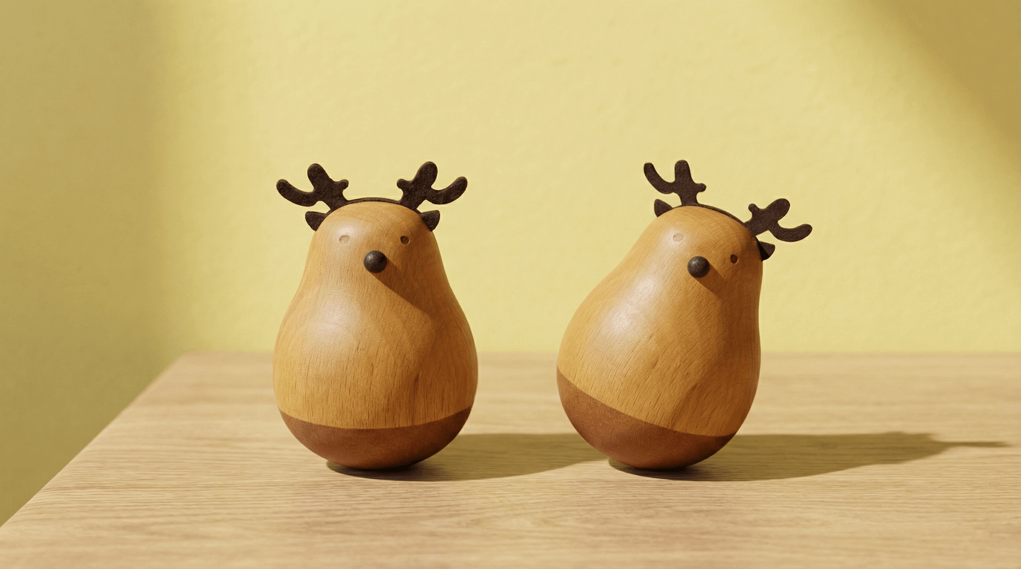 - Wooden deer desk ornament with gentle wobbling motion