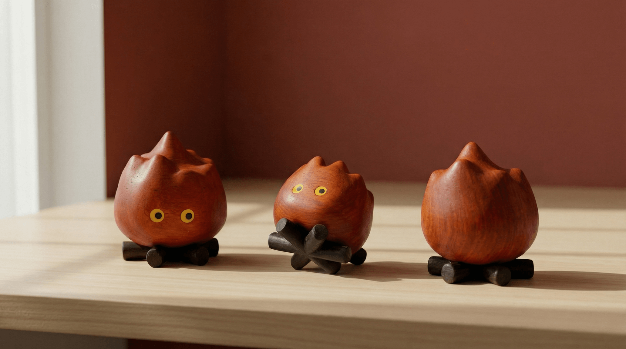 Wooden Flame Desk Ornament – A Playful Cedarwood Character,Small Wooden Flame